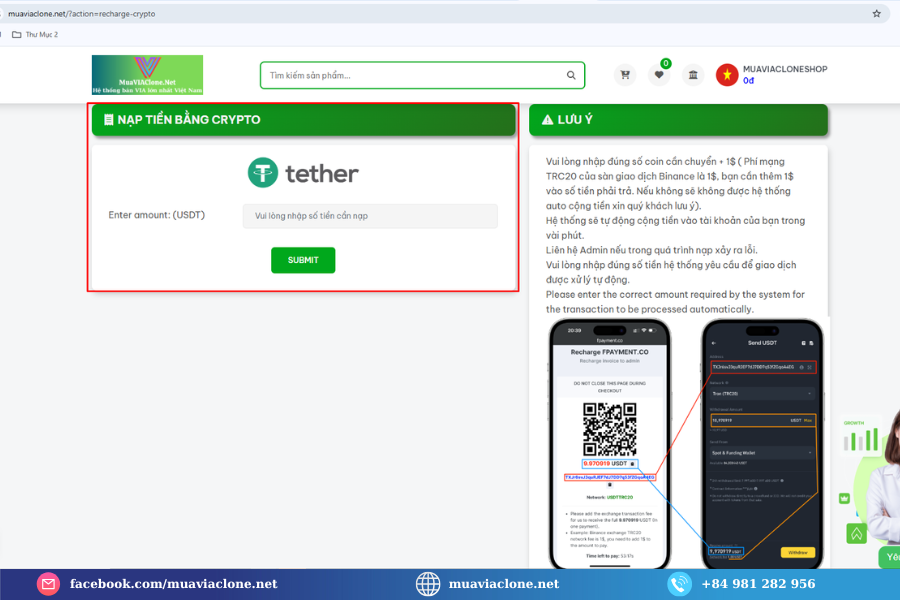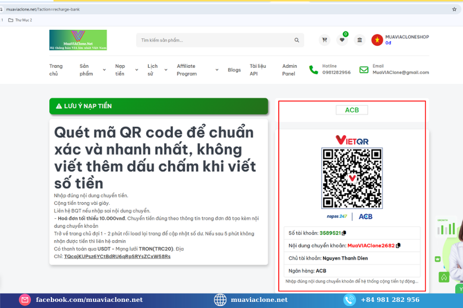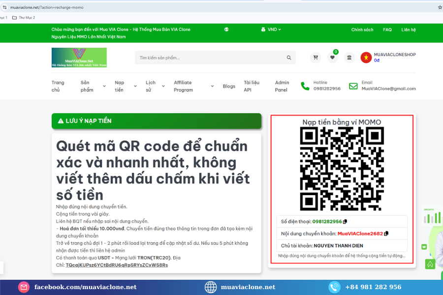 BƯỚC 3: NẠP TIỀN VÀO WEBSITE ĐỂ MUA VIA